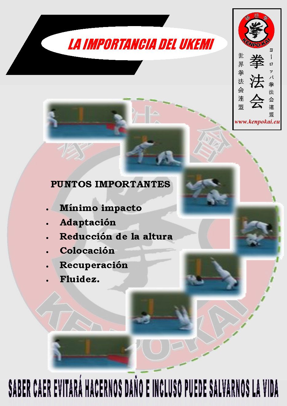 Debido a que existen técnicas de proyección y movimientos en salto, es muy importante acostumbrar al cuerpo a adoptar posiciones que no son naturales, de manera que podamos prevenir diferentes lesiones por algún tipo de caída. Para ello se entrenan diferentes movimientos que, a parte de dotar de agilidad al artista marcial, enseñan al cuerpo a moverse en situaciones en las cuales no está acostumbrado.